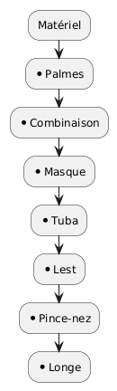 MatérielPalmesCombinaisonMasqueTubaLestPince-nezLonge